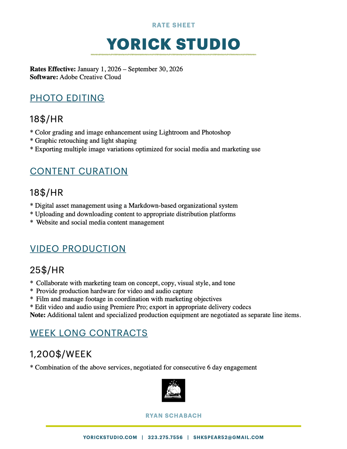 Rate Sheet